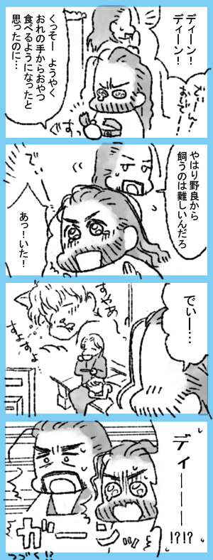 拾ったわんこにディーンと名付けたものの、逃げ出してしまったらしい。